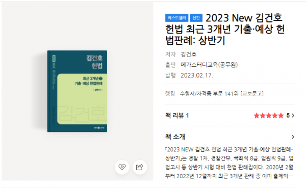 2023 New 김건호 헌법 최근 기출·예상 헌법판례: 상반기