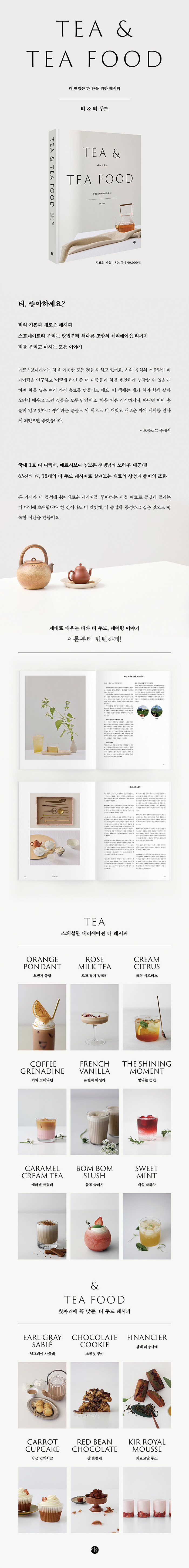 티를 맛있게 베리에이션하려면 기초부터 탄탄히 하는 것이 중요하다. 이 책에서는 차의 시작, 분류, 우리는 법, 즐기는 법, 페어링하는 법까지 차의 전반을 다루고 있다. 그리고 여러 차를 다양한 제철 재료들과 조합해 새로운 베리에이션을 제안한다. 레시피마다 사용된 차와 재료, 사용한 이유까지 꼼꼼하게 적었다. 설탕, 우유, 시럽 등 재료 이야기만 해도 한 권으로 따로 정리할 수 있을만큼 팁이 가득하다.