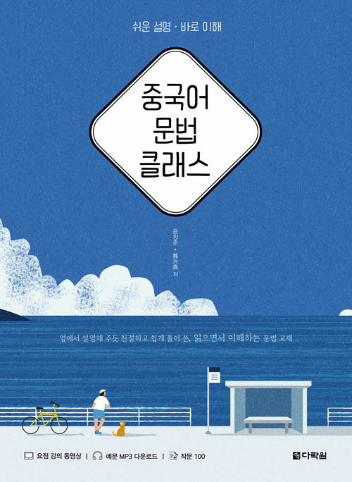 『중국어 문법 클래스』는 중국어 학습자에게 꼭 필요한 중국어 문법 기본서로, 총 12챕터로 구성되어 있습니다. 초·중급 학습자의 눈높이에 맞춰 중국어 핵심 문법을 최대한 쉽게 설명했습니다. 각 챕터 뒤에 ‘Chapter 확인문제’와 ‘HSK 실전문제’를 수록하여 관련 문제를 풀어 보며 내용을 복습하고, HSK 시험에도 대비할 수 있습니다. 각 챕터 첫 페이지에는 ‘동영상 강의’ 및 ‘예문 MP3’ QR 코드가 있습니다. 선생님의 재미있는 요점 강의 동영상과 예문 MP3 파일을 무료로 제공합니다. 눈으로 읽고, 귀로 듣고, 영상으로 보는 신개념 중국어 문법서, 『중국어 문법 클래스』로 시작해 보세요!