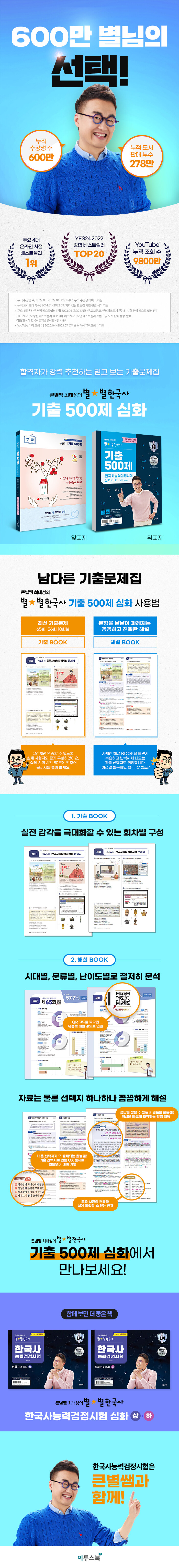 『2023 큰별쌤 최태성의 별별한국사 기출 500제 한국사능력검정시험 심화(1,2,3급)』는 수험생의 편의를 위해 〈기출 BOOK〉과 〈해설 BOOK〉 두 권으로 분리되어 있습니다.