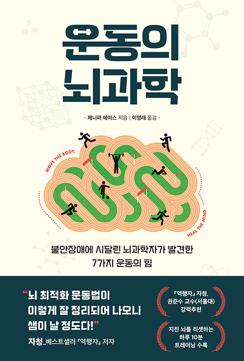 이 책의 원제는 『Move the body, Heal the mind』로 “몸을 움직여 마음의 병을 치료한다”라는 뜻이다. 저자는 일주일에 단 1시간만 운동해도 우울증을 예방할 수 있다는 실험 결과를 제시하고, 운동을 할 때 나오는 신경전달물질 신경펩타이드 Y가 트라우마나 불안으로부터 뇌를 보호해준다는 연구 사례도 보여준다. 그뿐만 아니라 낮은 강도로 오래달리기만 해도 누구나 엔도르핀과 엔도카나비노이드가 극대화되어 ‘러너스하이’를 맛보고 중독에 빠진 뇌를 구출할 수 있다고 말한다. 우리가 고통받는 정신질환의 진짜 원인은 염증이고, 운동에는 소염 효과가 있기에 운동이 우리 인생의 한 줄기 빛이자 해법이라는 것이다. 운동으로 뇌를 변화시키고 멘탈을 키운 이 책 속 수많은 사례를 따라가다 보면 독자는 자신의 문제가 부족한 근력, 움직이지 않은 생활습관에서 비롯된 것임을 저절로 깨닫게 된다.