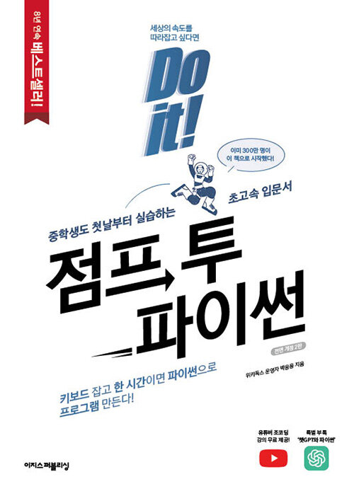 이번 개정 2판에서도 누구나 배울 수 있는 쉬운 코딩 유튜브 채널 '조코딩'에서 『Do it! 점프 투 파이썬』으로 진행한 강의 영상을 무료로 제공한다. ‘조코딩 파이썬’이라는 별칭을 이 책이 가질 정도로 인기가 높았던 영상 강의를 조코딩 또는 이지스퍼블리싱 유튜브 채널에서 시청할 수 있다. 50만 코딩 유튜버가 알려 주는 노하우로 이 책을 더 완벽하게 공부해 보자.