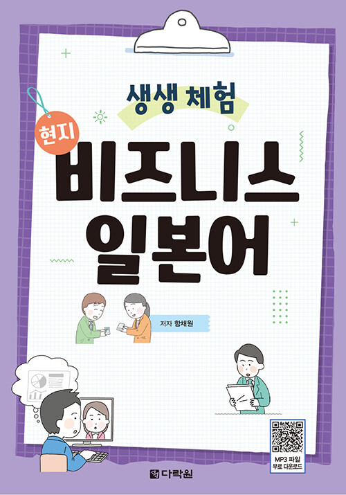 『생생 체험 현지 비즈니스 일본어』는 본책과 MP3 음성 파일을 제공하고 있으며, 다락원 홈페이지와 표지의 QR코드를 통해 MP3 파일을 다운받을 수 있습니다.