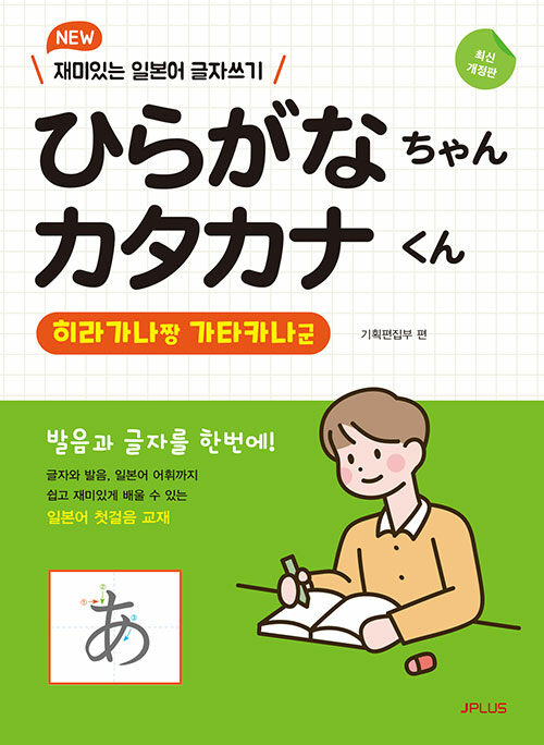 New 히라가나짱 가타카나군은 300컷의 삽화와 예쁜 손글씨 서체, 교과서 글씨 따라쓰기를 동시에 익힐 수 있도록 편집한 개정판 도서입니다. 전체적인 구성은 히라가나편과 가타카나편으로 나누고 각 행마다 글자 익히기, 중간확인연습, 관련어휘 익히기, 실제로 쓰여진 일본의 광고 등에서 글자 알아보기 등으로 구성되어 있습니다. 마지막의 연습문제 부분은 종합적으로 히라가나와 가타카나를 잘 익혔는지 확인하고 더불어 어휘력도 키울 수 있도록 꾸며져 있습니다. 특히 일본 사람이 쓴 글씨체를 넣어 활자체와 실제 일본인이 쓰는 글씨체를 비교해 보고, 연습할 수 있도록 편집한 것이 특징이라 할 수 있습니다.