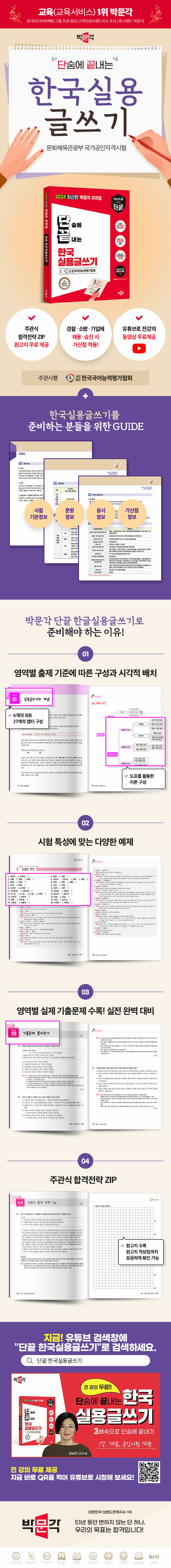 보다 쉽고 빠른 합격을 위해 유튜브 박문각 한국실용글쓰기에서 전강의를 무료로 제공한다.