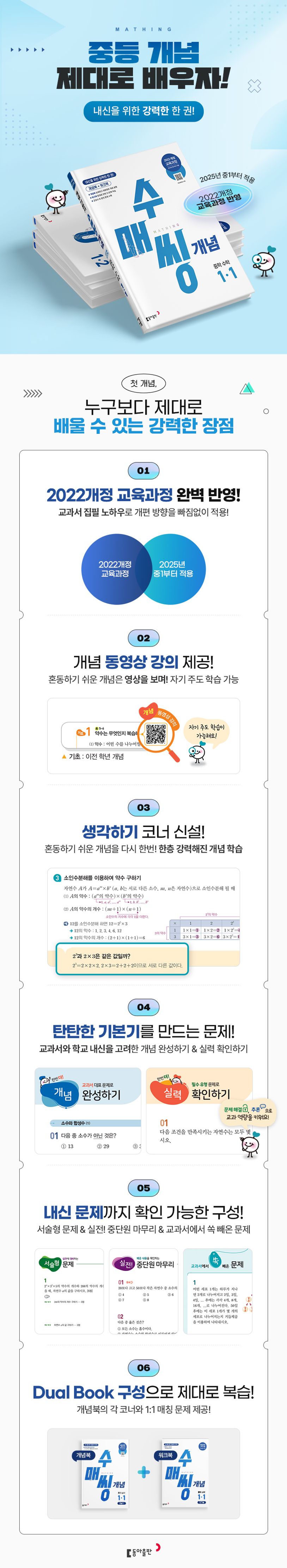 한눈에 볼 수 있는 상세한 개념 설명과 세분화된 개념 설명인 기초, 개념, 집중 코칭을 통해 개념을 쉽게 이해할 수 있습니다.