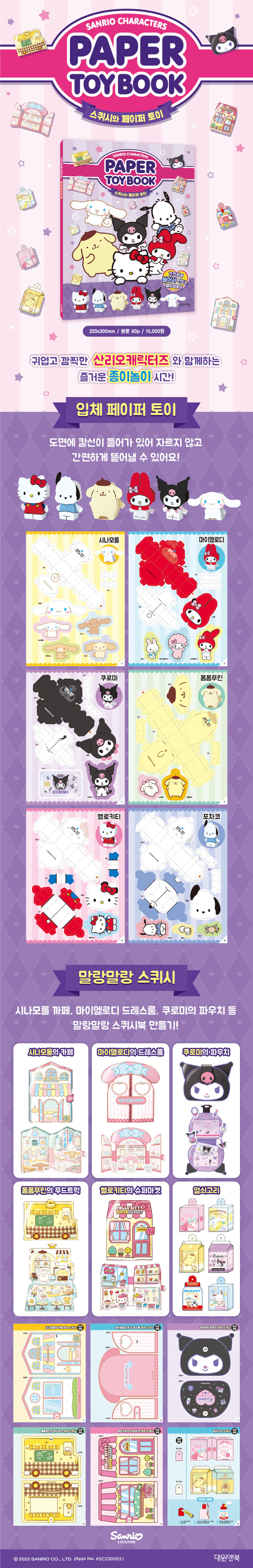 귀엽고 깜찍한 산리오 캐릭터즈와 함께하는 즐거운 종이놀이 시간~ 간편하게 톡톡 뜯어서 풀칠만 하면 완성되는 페이퍼 토이와 시나모롤 까페, 마이멜로디 옷장, 쿠로미의 파우치 등 말랑말랑 스퀴시북 만들기를 한번에 즐겨요!
