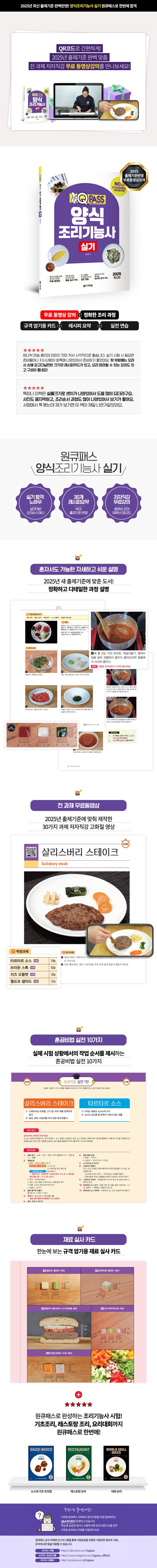 또한 무료 동영상을 제공하여 실기 시험을 준비할 때 어느 부분에 초점을 맞춰야 하는지 파악할 수 있어 단기간의 효과적인 학습이 가능하다. 조리기능사 실기 시험에서 중요한 ‘합격 포인트’도 수록하여 수험생의 완벽한 학습을 돕는다.