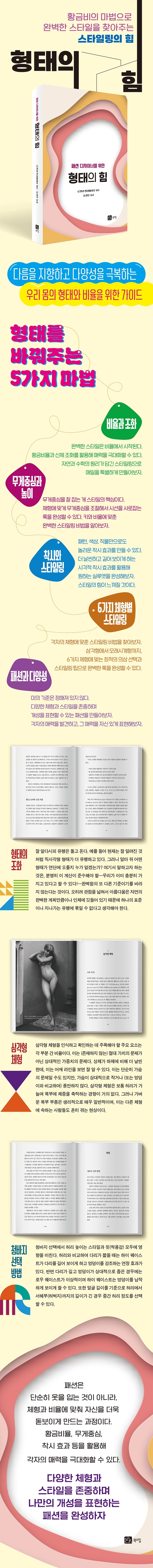 아름다움은 자유 그 자체이며 온전한 나 자신으로 존재하는 기쁨이다. 무엇보다 스스로를 드러내는 것을 두려워하지 않아야 한다. 단지 나를 표현하는 가장 적합한 방법을 찾기만 하면 된다. 감추지 말고 돋보이게 하는 것이 중요하다. 우리 몸의 가치를 발견하고 형태의 아름다움을 더하는 즐거움을 경험해 보자.