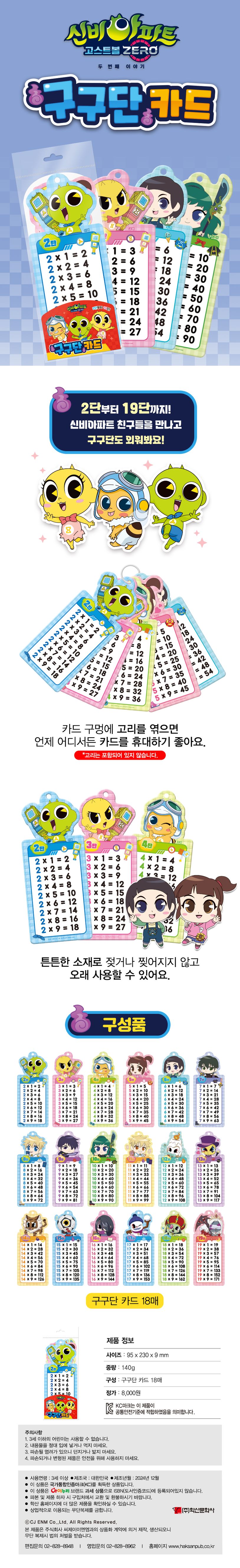 신비아파트 캐릭터들과 함께 외우는 구구단 카드! 어렵다고 느끼는 구구단을 캐릭터들과 쉽고 즐겁게 외워보아요. 카드에 있는 구멍에 고리를 엮으면 언제 어디서든 카드를 휴대하기 좋고, 튼튼한 소재라서 젖거나 찢어지지 않아 오래 사용할 수 있어요!