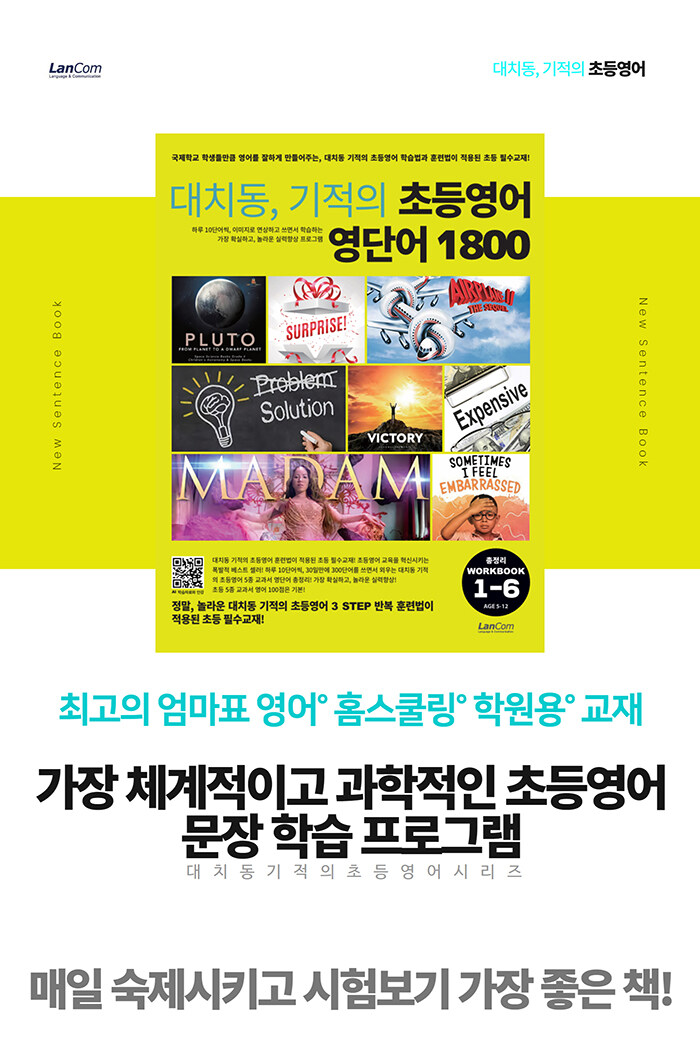 엄마표 영어 홈스쿨링 및 학원과제 영어교재로 최적화된 대한민국 최고의 초등영어 통문장 구문책으로, 초등영어 5종 교과서 20권에 나오는 전체문장 400개와 엄마표 평생영어 반복문장 400개 그리고 학교표 교실영어 핵심문장 1000개가 합쳐진 총 1800문장의 학습을 통해 원어민적 의사소통을 가능하게 만들어 주는 기적의 교재입니다. 학교영어 100점을 뛰어넘어 국제학교 학생들만큼 영어를 잘하게 만들어주는, 대치동 기적의 초등영어 학습법과 훈련법이 적용된 초등 필수교재로 25년 이상을 초등영어 교육에 몰입해 온 최고의 전문가 집단이 만든 가장 체계적이고 과학적인 초등영어 문장 구문 학습 교재이기도 합니다.