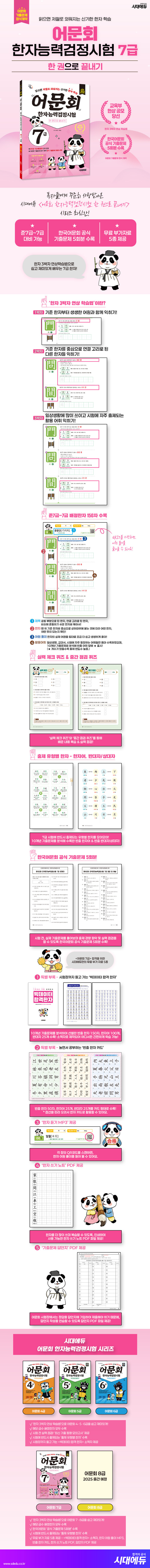 교육부 현상 공모 당선! 박정서·박원길 저자의 읽기만 해도 저절로 외워지는 ‘한자 3박자 연상 학습법’으로 어문회 한자능력검정시험 7급의 배정한자를 쉽고 재미있게 익힐 수 있도록 하였습니다.
