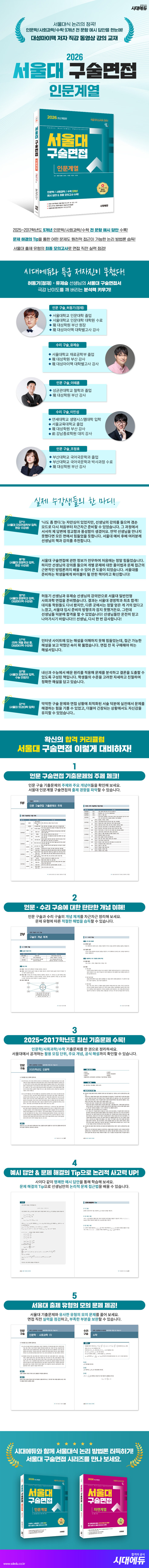 이 책은 그동안 서울대에 지원한 학생들과 함께해 온 구술면접 강의의 노하우를 집대성한 결과물입니다. 우리가 푼 것, 학생들이 푼 것, 학생들과 주고받은 피드백까지 ‘예시 답안’에 모두 담았습니다. 서울대 구술 문제는 어렵습니다. 제시문 기반의 심층 인문·수리 구술면접을 시행하는 다른 대학들과 비교해도 압도적으로 어려운 편입니다. 그만큼 넓고 깊은 사고력을 요하기 때문입니다. 하지만 결코 넘지 못할 벽은 아닙니다. 충분히 도전해 볼 만하죠. 처음부터 잘하는 학생은 거의 없습니다. 하지만 서울대에 지원할 만한 자질을 갖춘 학생이라면, 차분하고 꼼꼼하게 준비한다는 전제하에 누구나 충분히 잘 해낼 수 있습니다. 그러니 초반에 실력이 부족하다고 느껴지더라도 결코 낙담할 필요는 없습니다. 자신을 믿고, 선생님들을 믿고, 이 책을 믿고 꾸준히 공부해 나가기를 바랍니다. 특히, 서울대 구술면접 수업을 접할 기회가 부족한 학생들에게 이 책이 실질적인 도움이 되기를 기대합니다.