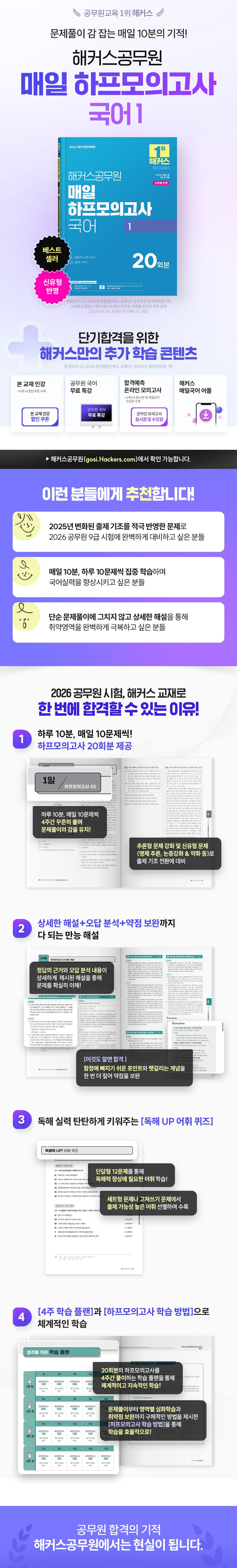 1. 하루 10분, 매일 10문제씩 풀이하는 [하프모의고사 20회분]!