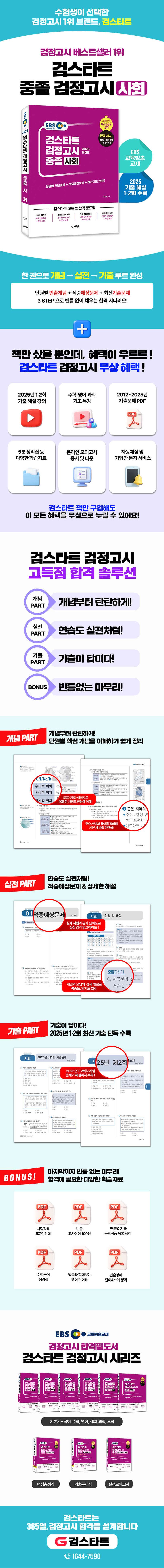 ★ 2025년 1·2회 기출문제 수록! 단독제공! ★ 단원별 개념정리 + 기출문제 체크 + 최신기출 2회분! ★ 검스타트 중졸 검정고시 최신기출문제 해설강의 무료제공! · 온라인 모의고사 상세해설, 시험장에서 보는 5분 정리집 학습자료 무료제공 · 가답안 문자 예약 및 자동채점 서비스 지원