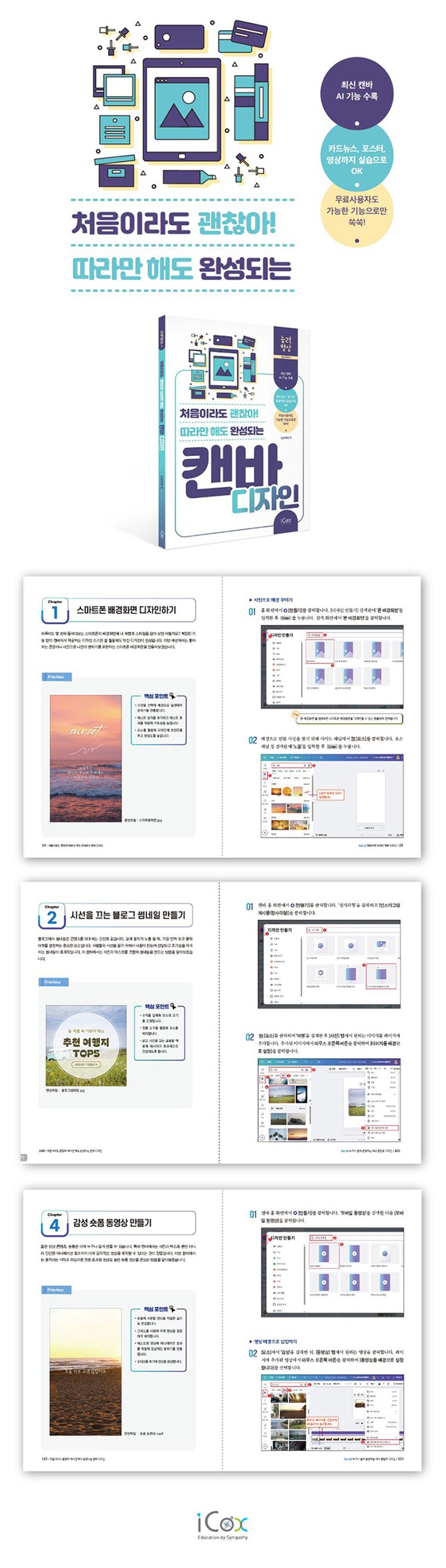 저자가 디자인 문외한에서 캔바 크리에이터로 변신하며 얻은 노하우와 강의 현장의 실전 팁을 바탕으로, 누구나 쉽고 재미있게 실생활에 바로 적용할 수 있도록 구성했습니다. 이 책과 함께 "내가 이렇게도 할 수 있구나!"라는 자신감을 얻고, 캔바를 아이디어를 세상과 소통하는 강력한 도구로 활용해 보세요. 캔바가 열어줄 새로운 가능성 앞에서 당신의 인생을 바꿀 전환점을 발견하게 될 것입니다!
