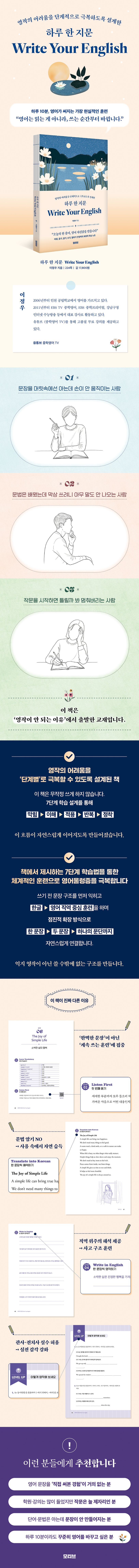 영어 학습에서 가장 많은 사람이 막히는 구간은 ‘읽기’도 ‘듣기’도 아닌, 바로 ‘쓰기’다. 머릿속에는 문장이 떠오르지만 막상 손으로 옮기려면 멈춰버리는 경험은 영어 학습자라면 누구나 해봤을 것이다. 『하루 한 지문 Write Your English 』는 바로 그 지점에서 출발한 책이다. 영어 문장을 ‘아는 것’에서 ‘써낼 수 있는 것’으로 바꾸는 가장 현실적인 훈련을 제시한다.