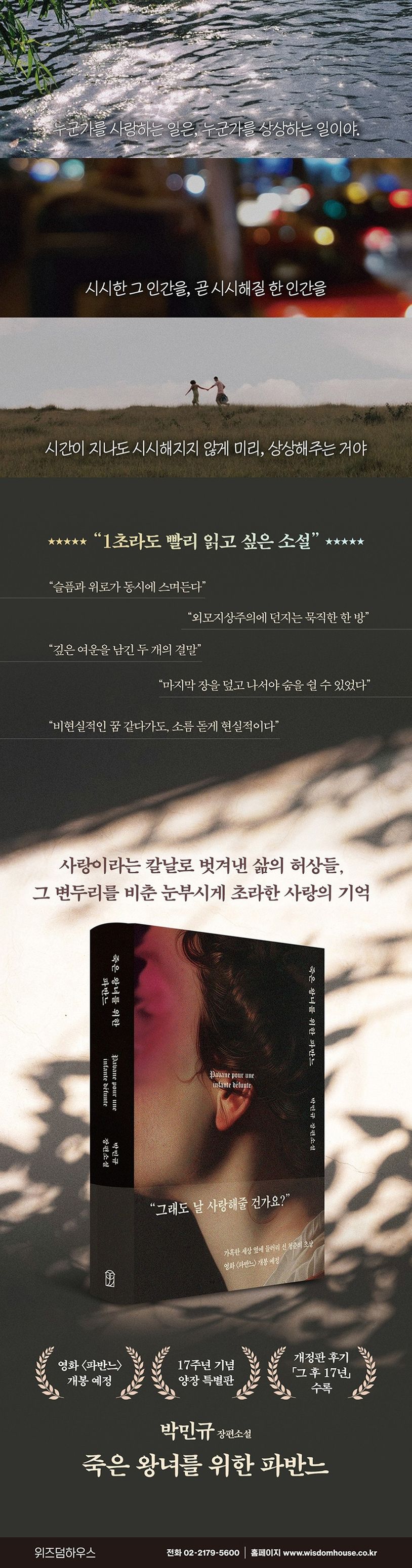 2008년 온라인 연재 당시부터 17년간 스테디셀러로 자리 잡은 『죽은 왕녀를 위한 파반느』가 영화 개봉을 앞두고 다시 새롭게 주목받고 있다. 새로운 장정으로 선보이는 개정판에는 소설 속 ‘나’와 ‘그녀’, 요한의 17년 후 이야기를 더해 독자들에게 한층 확장된 감동을 전한다.