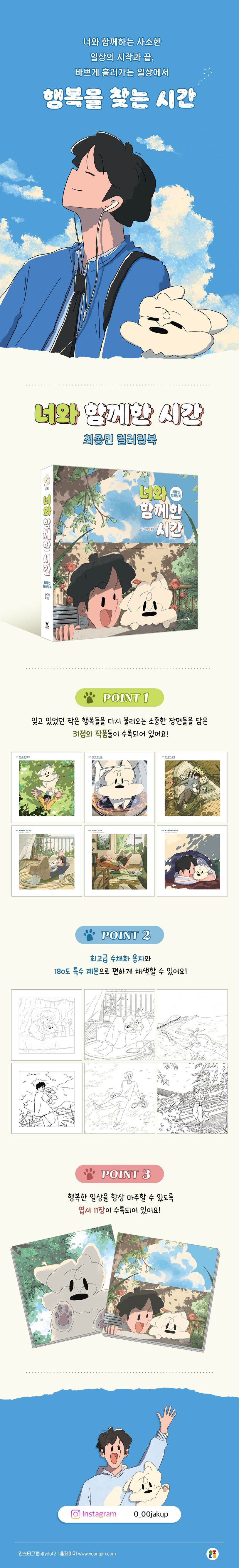 저는 그렇게 지나쳐온 소소한 순간들, 문득 돌아보아야만 느껴지는 따뜻한 감정들을 소중히 그림에 담아봅니다. 바쁘게 흘러가는 일상 속에서 잠시 멈춰, 이미 지나온 시간에도 충분한 행복과 위로가 있었음을 전하고 싶은 일러스트레이터 “0_00 최종민”입니다.