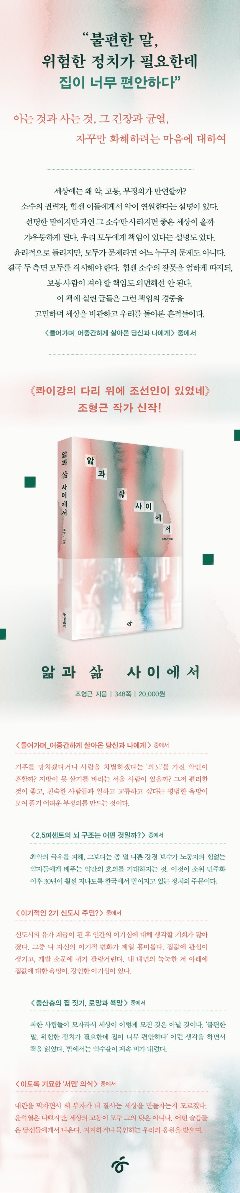 정규직 교수를 사직하고 ‘동네 사회학자’를 자처하며 삶에 기반한 앎을 지향해온 저자 조형근이 2019년부터 2025년까지 신문 등에 발표했거나 개인 소셜미디어에 기록한 글 가운데 ‘지금 여기’에서 다시 새기고 돌아보면 좋을 내용을 선별해 묶었다. 12.3 계엄과 타국의 내전, 참사와 재난, 산재 사망사고와 같은 거대한 사건부터 집과 이웃, 마을, 동료를 둘러싼 저자의 사적인 일화들까지, 동시대를 살아가는 이들이 함께 겪은 정치?사회적 국면과 두루 공감할 만한 삶의 장면들이 그 배경이다.