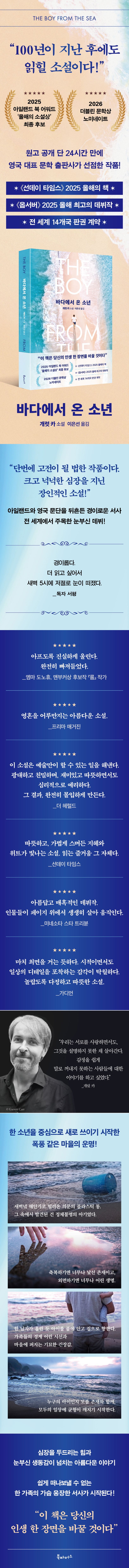 『바다에서 온 소년』은 한 아이의 도착으로 시작되지만, 결국 우리가 어떻게 서로의 삶을 떠안고 살아가는지에 대한 이야기로 확장된다. 이해하지 못해도 곁에 남고, 상처 입어도 등을 돌리지 않는 사람들. 그들의 침묵과 선택은 시간이 흐르며 하나의 운명이 된다.